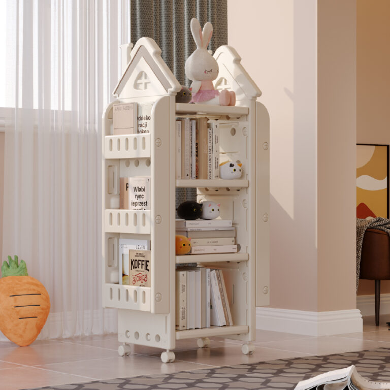 ספרייה מעוצבת ניידת עם 10 תאים – לבן