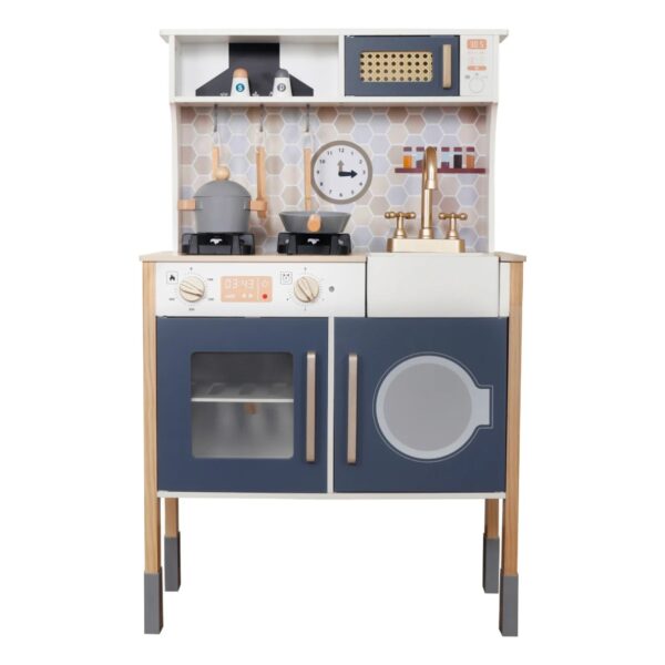 מטבח לילדים עץ יכיל את כל החלקים החשובים בדומה למטבח אמיתי של ההורים. כך משטחי הכנת אוכל, כיור עם ברז נאה מעליו, ארונות, מגירות אחסון, מתקן לבישול והכנת אוכל, מכשירי חשמל דוגמת תנור ומיקרו, מתקנים לייבוש כלים ועוד. יש בו חלקים הניתנים להסרה והחזרה לטובת ניקוי ותחזוקה. בנוסף ניתן להוסיף לו פריטים שונים כמו סכו"ם, כלי אוכל והגשה ואפילו מיני מזונות ופירות. הכול כדי שייראה אותנטי. לעיסוק במטבח יש יתרונות רבים. ראשית ההנאה שבו. ניתן לעבוד בו לבד או בחברת אחים ו/או ילדים אחרים וכך לפתח קשרים חברתיים. הילדים יכולים להיות יצירתיים ולהכין אוכל אותו הם מגישים בגאווה לאחרים. הדבר תורם גם לדימוי ולביטחון העצמי שלהם. כל מתקן כזה מיוצר מחומרים תקניים והוא בטוח לשימוש. ניתן להעמיד מטבח בתוך חדר ויש אחרים עמידים ללחות ומים המתאימים לסביבה חיצונית.