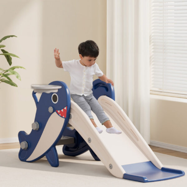מגלשה מעוצבת מתקפלת לילדים עם כדורסל – דגם כרישון כחול