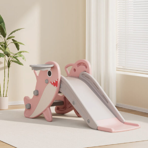 מגלשה מעוצבת מתקפלת לילדים עם כדורסל – דגם כרישון ורוד
