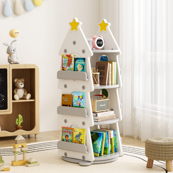 שידת אחסון פתוחה לצעצועים בצבע לבן.