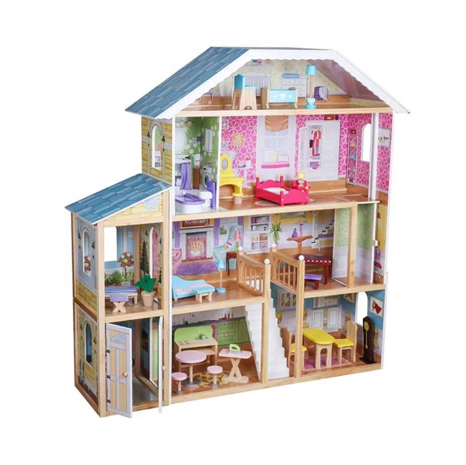 בית הבובות עשוי עץ איכותי, מעוצב בקווים ססגוניים ונעימים, וכולל ריהוט ואביזרים רבים ליצירת חוויית משחק עשירה וממושכת.