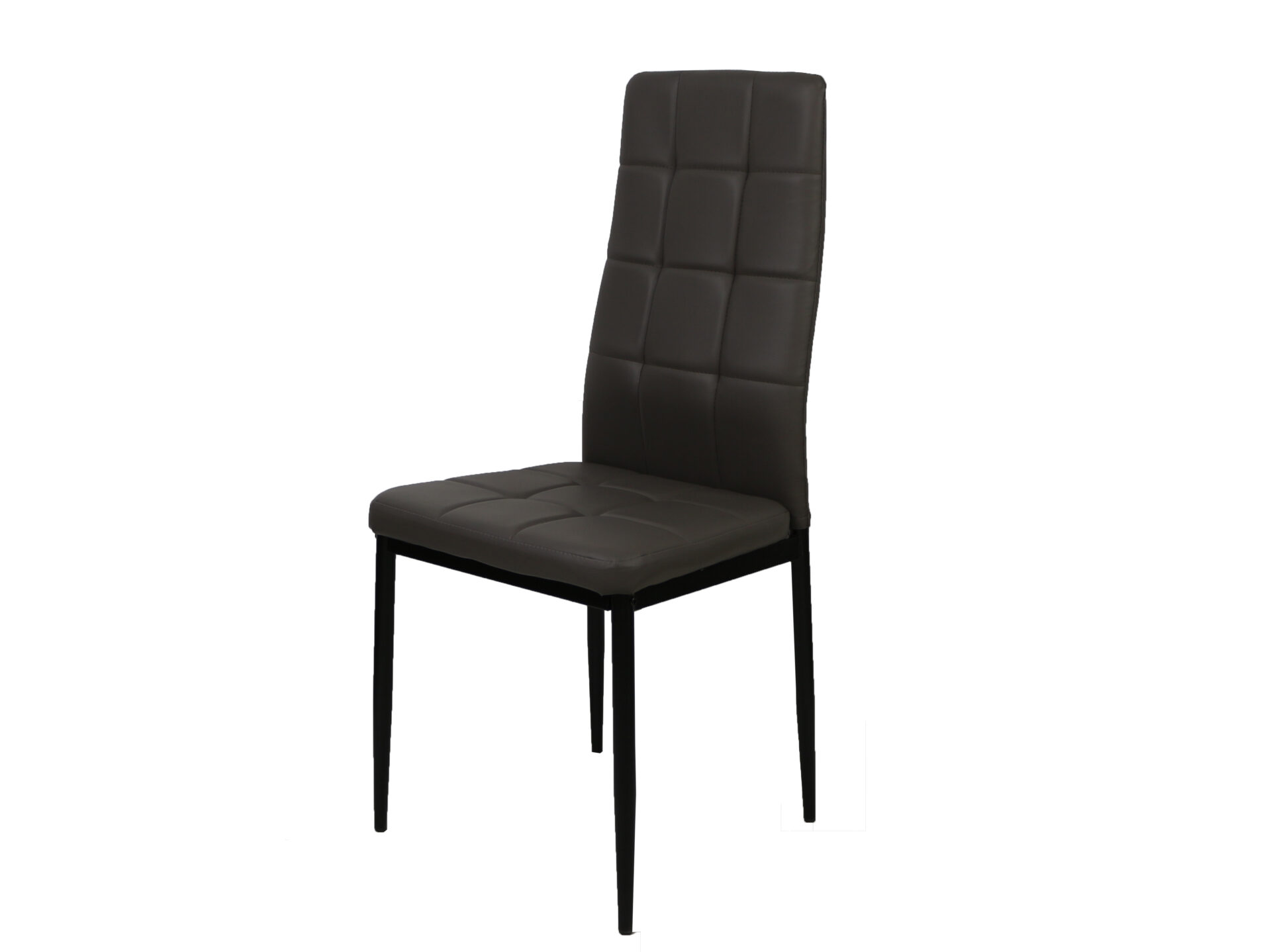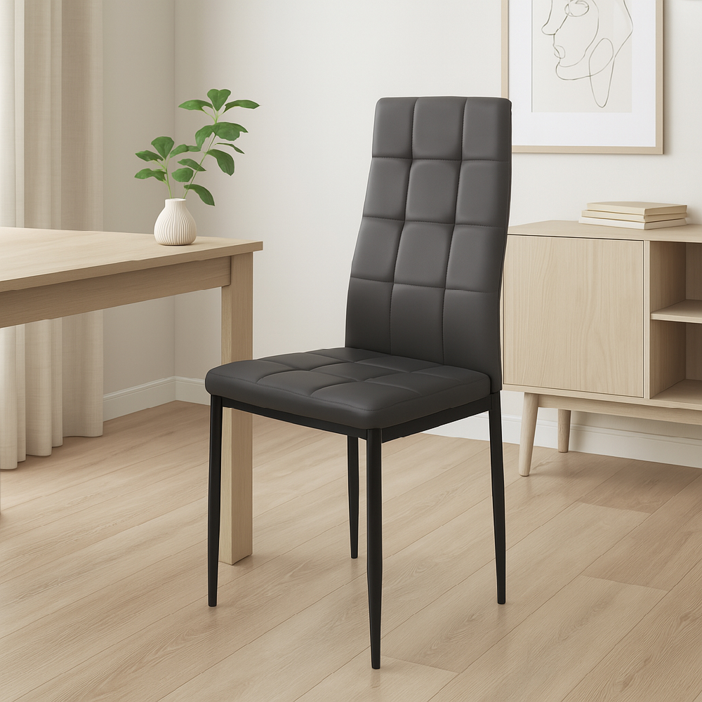 כיסא אוכל אלגנטי בצבע אפור, משלב ריפוד איכותי עם רגלי מתכת יציבות.