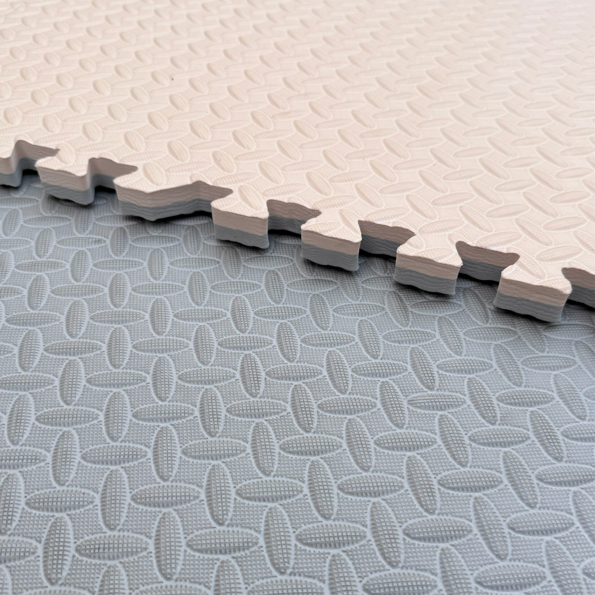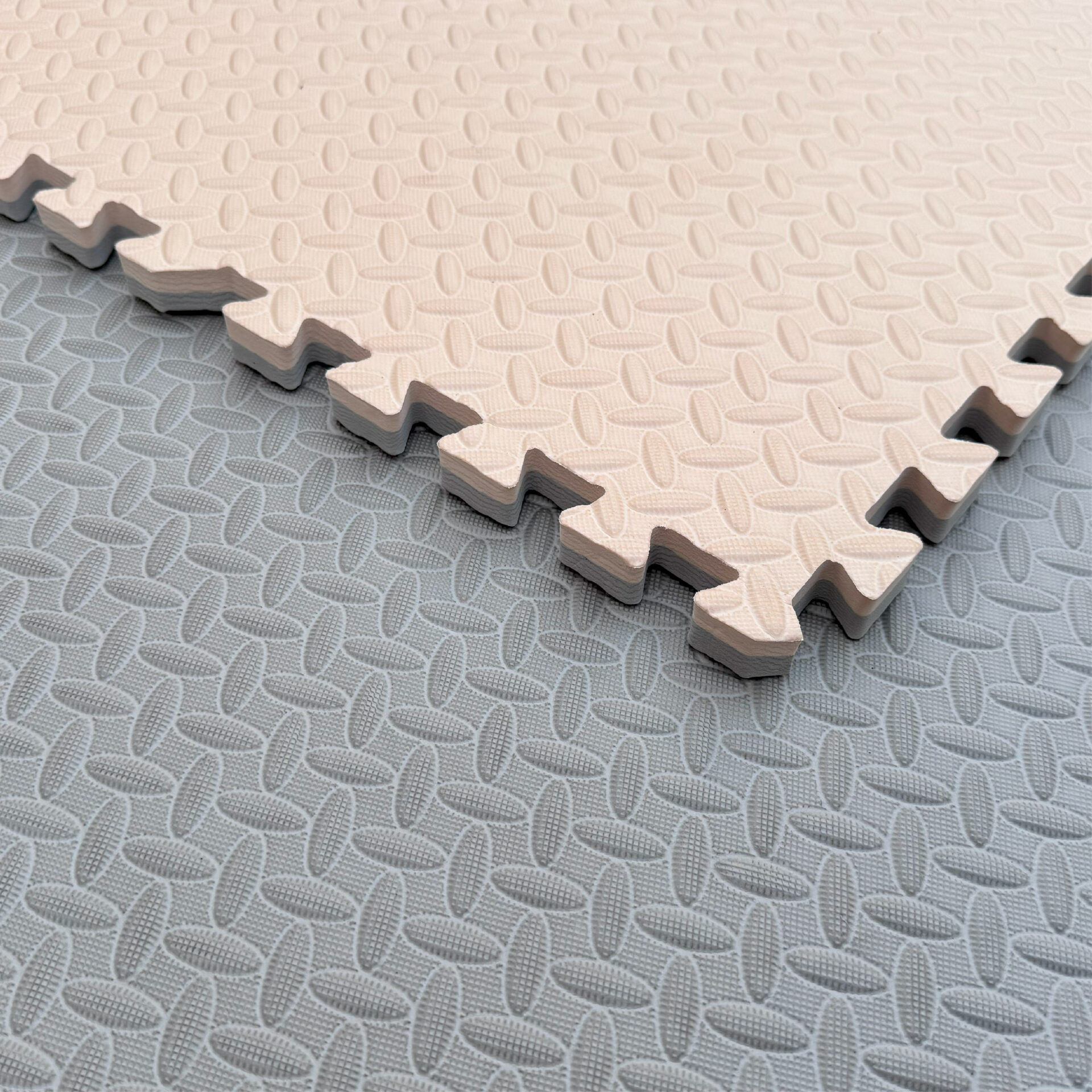 מזרן פאזל דו־צדדי EVA לחדרי ילדים, כושר ומשחק – עמיד, איכותי ובעל טקסטורה ייחודית | צבע: אפור ובז'.