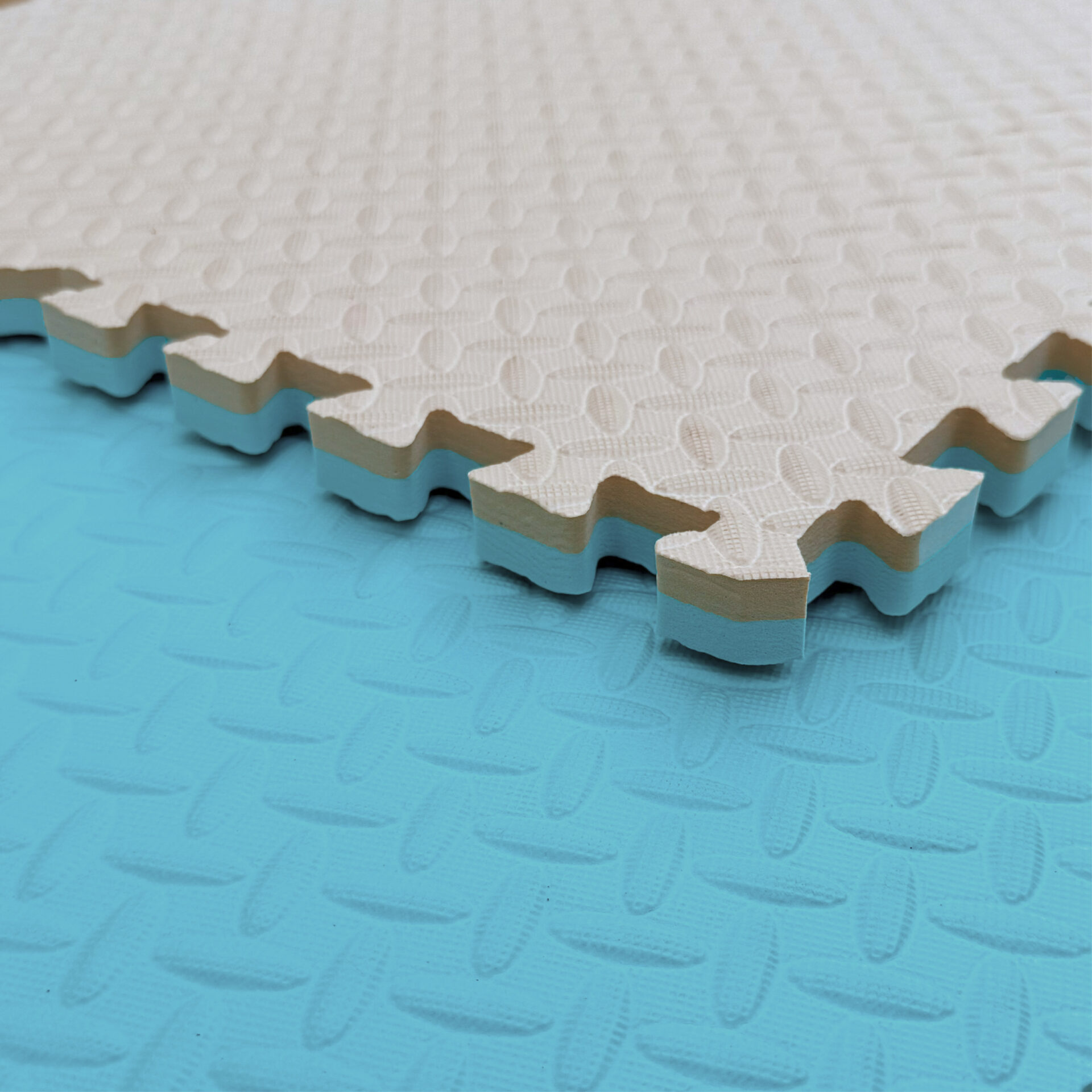 מזרן פאזל דו־צדדי EVA לחדרי ילדים, כושר ומשחק – עמיד, איכותי ובעל טקסטורה ייחודית | צבע: תורכיז ובז'.