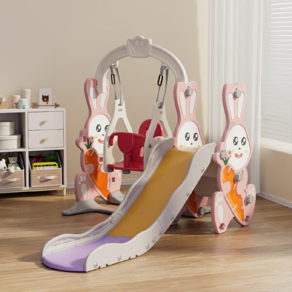 העניקו לילדים חוויית משחק מלאה עם מתקן השעשועים 3 ב־1 דגם ארנבון ורוד – גלישה, נדנדה וחיזוק כושר גופני במקום אחד!