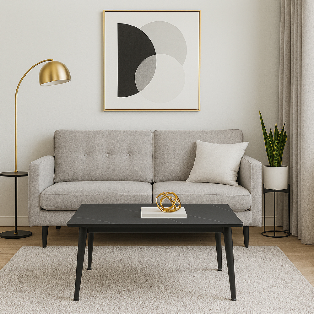 שולחן סלון/קפה מלבני עם משטח אבן ורגלי מתכת דגם מילאנו | שחור